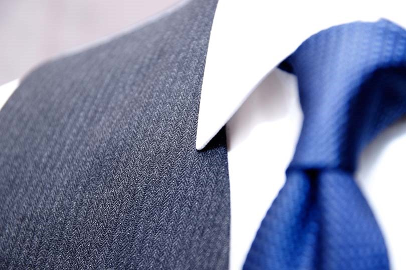 スリーピーススーツは、上着のボタンを閉めなくてもシャツや肌が露出することが無いため、失礼に当たりません。