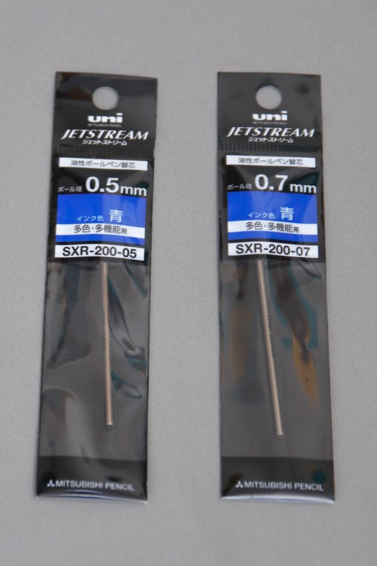 ジェットストリームにも実はパーカーリフィルがある(SXR-600)のですが、黒色のみで目当ての青色がありません。