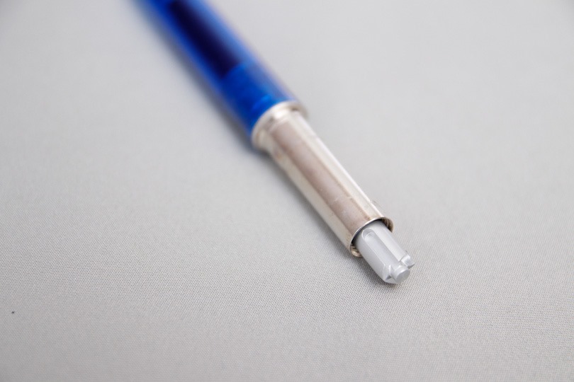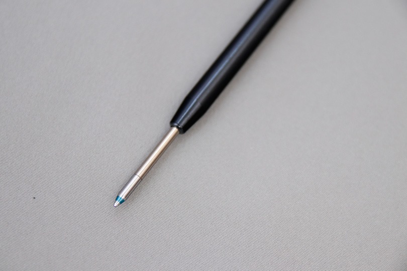今回は、耐水性も考えて油性ボールペン、なかでも抜群の書き味で定評のあるジェットストリームへの換装を目指します。色は、軸色に合わせて青色にします。