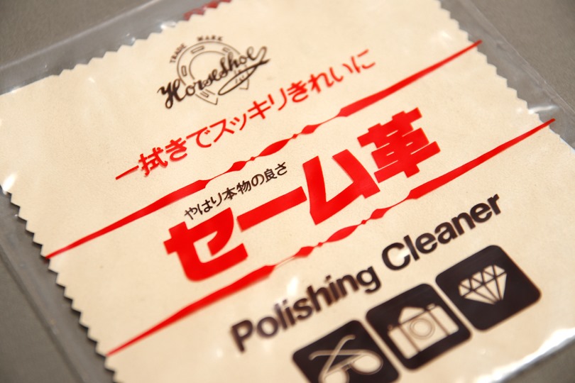 一旦ティッシュやキムワイプ等で掻き出した汚れを大雑把に拭った後、仕上げにセーム革で艶出しするだけです。