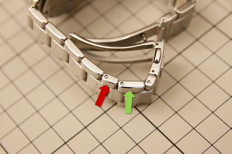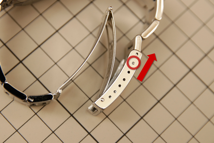 さて、革バンドなら穴を1つずらすだけですが、金属ブレスの場合どうしたら良いのでしょうか。次に見ていきます。