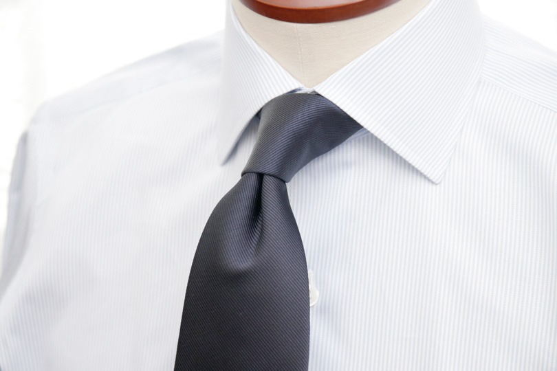 紺無地は地味……と、ストライプ等に比べて人気が無いかも知れません。しかし、良質な紺無地のタイは、柄のシャツやスーツとの相性が良く、さらにNGなコーディネートが少ないため、1本あるととても重宝します。