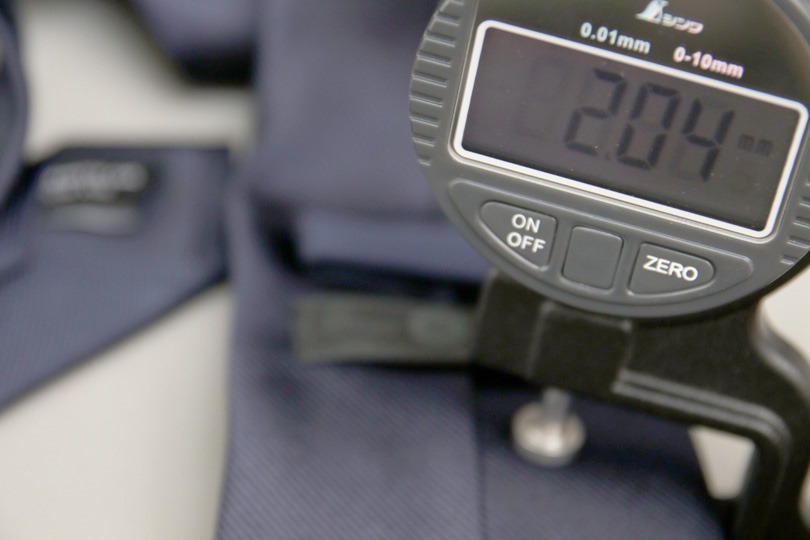 単に芯地を厚くしたり、表地のたたみを多くするだけでも厚さを出せますが、TANGOについては生地そのものの目が詰まっていて厚みがあるため、ノットももっさりせず、高級感があります。