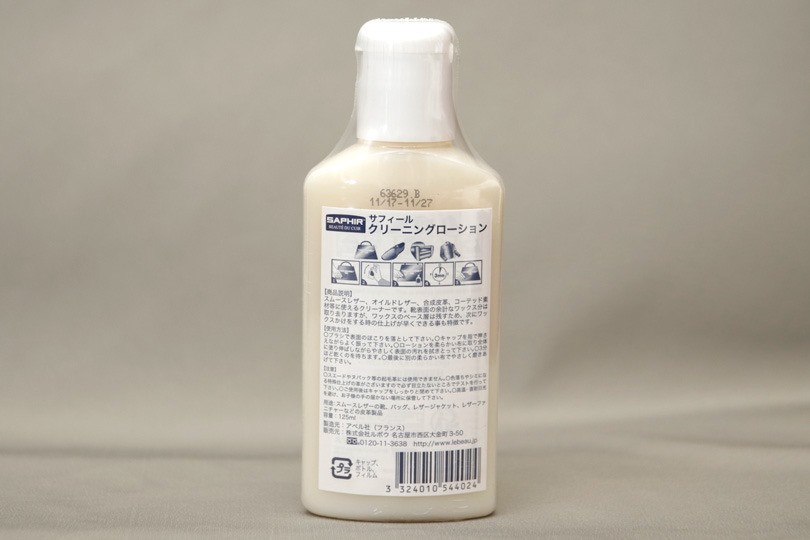 ただ、クリーニングローションの容量は125mlとユニバーサルレザーローションよりも少なくなっていて、容器の形状は同じ125mlであるサフィールノワールのレザーバームローション(右)とほぼ同一です。