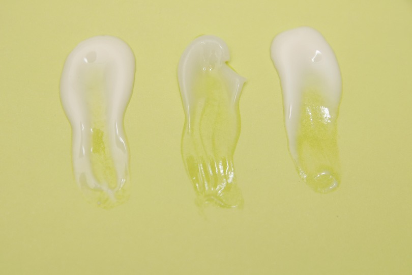 指で擦ってみると、両端は乳液の様なねっとり感があるのに対し、クリーニングローションは少しサラサラしたゲル状に感じました。