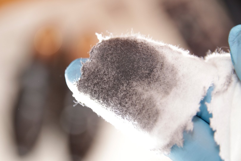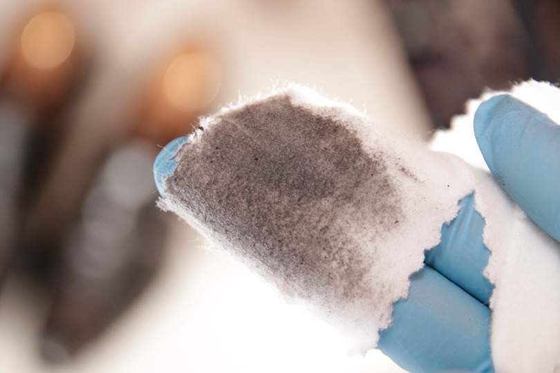 靴そのものの比較ではよく分からなかったのですが、使用した布を見ると、クリーニングローションの方が靴墨が多く取れている様に思います。