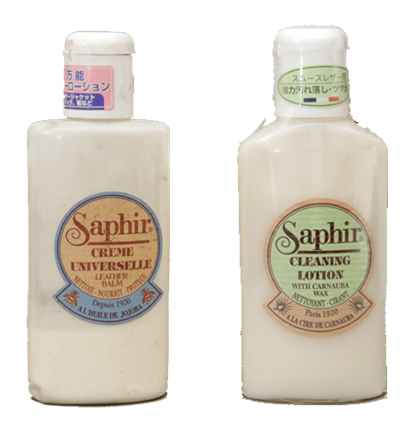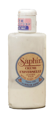※サフィールノワール……靴ケアブランド「サフィール」の上級ライン。天然成分、とりわけビーズワックス(蜜蝋)を前面に押し出した、比較的高額な製品が多い。クレム1925の特徴的な形状の靴クリームが有名。ノワール(仏語で黒の意)のとおり、デザインは黒を基調としている。