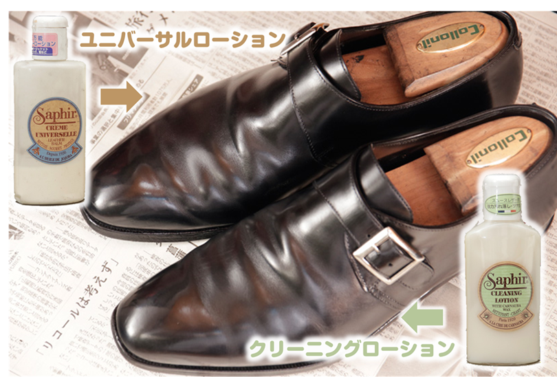 - 靴墨の厚塗りや、汚れが気になる場合はクリーニングローション