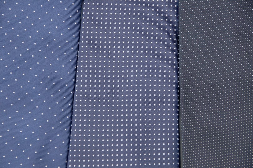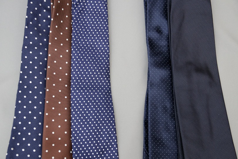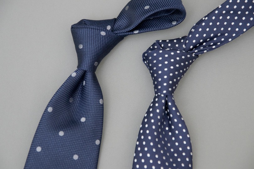 - ドット柄のネクタイは、色、ドットの大きさと間隔、ドットそのものの形に注目して選ぶ