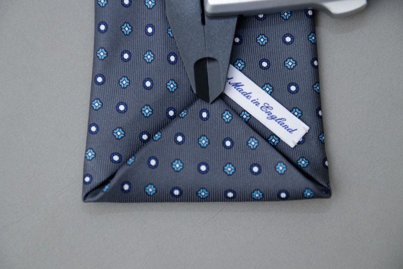 遠くからはドット柄に見えますが、よく見てみると花柄のネクタイです。