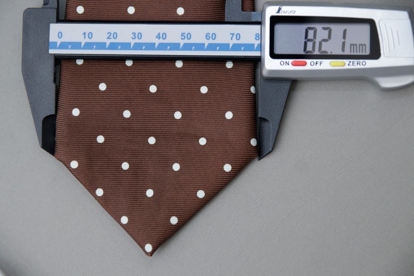 まずは大剣幅。近頃のトレンドは8.2cm~8.5cm程度(海外ブランドはもう少し太い物が多い印象です。)。8センチを下回ると細く、9センチを上回ると太いという感覚です。