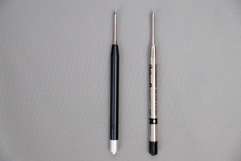 実際にペリカンの「スーベレーン」へ三菱の「ジェットストリーム」の替え芯を装着したところ、ぐらつきもなく、細字かつ書き味の良いペンへと生まれ変わりました。