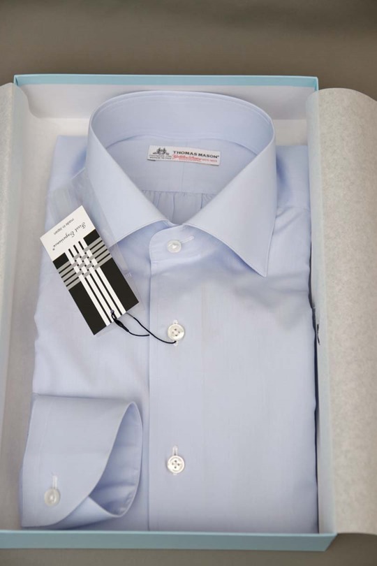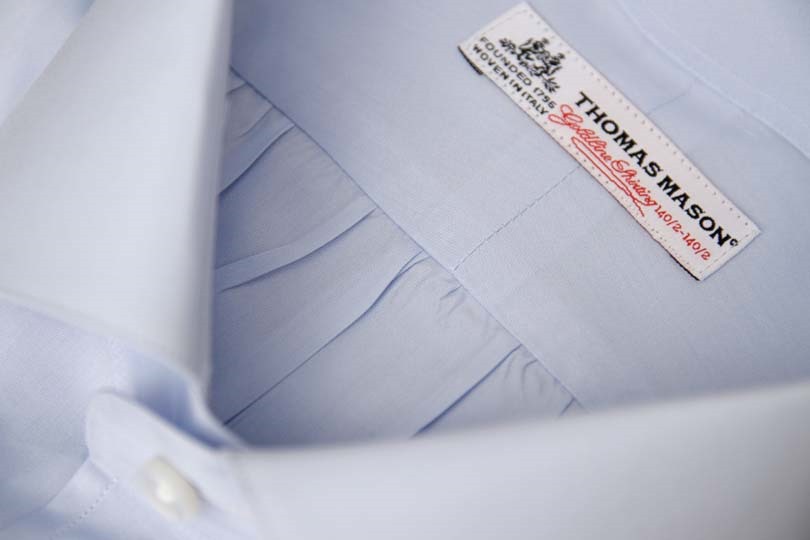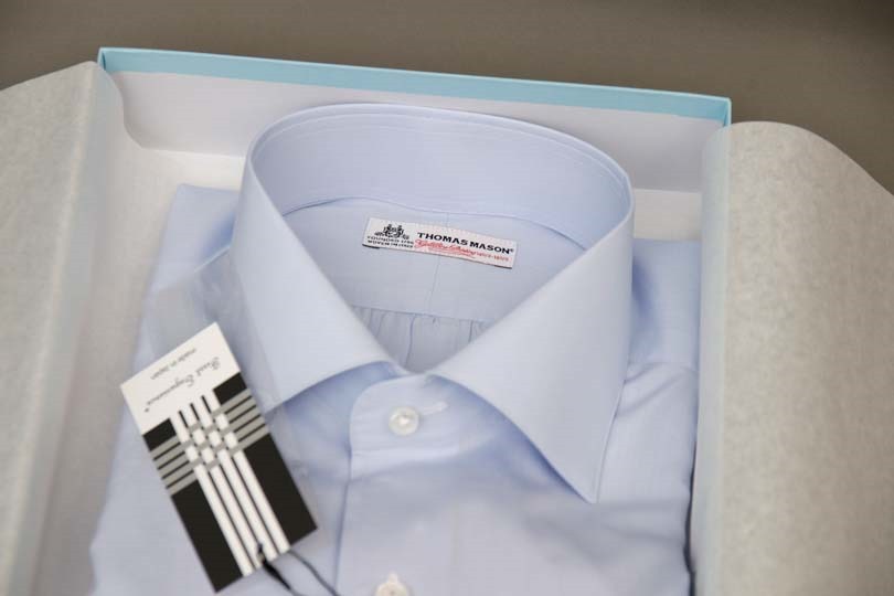 - 生地:水色、ブロード140番手双糸(Thomas Mason Gold Line HJY601)