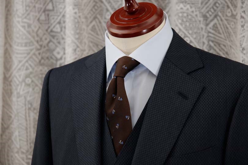 最高級の生地を生かすための最上級の縫製仕様となります。運針は限界に近い24~28針(生地により異なる)(中略)ボタン付けも手付が標準となります。(後略)