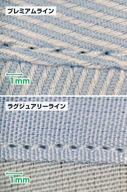 これは、従来から生地のランクでスタンダードラインとプレミアムラインの縫製に分かれていたのと同じく、生地の選択により自動的に縫製ラインが決まるということです。