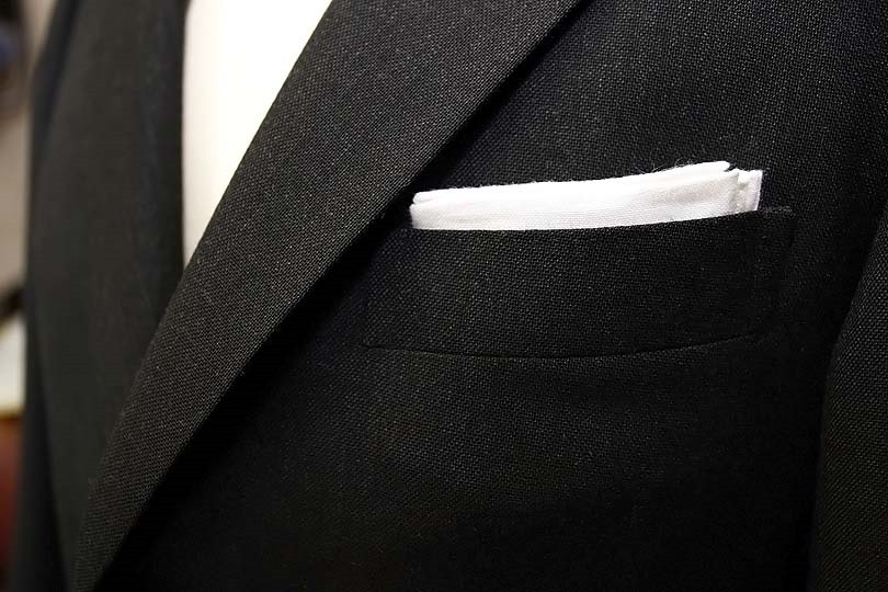 こんな感じに、ポケットチーフを差して使います。一時は消滅したポケットチーフですが、最近は街中でもよく見るようになりました。