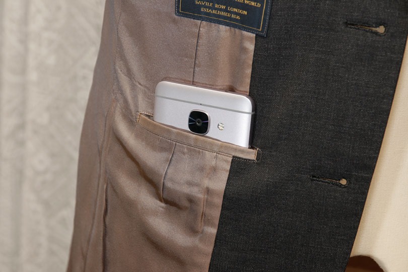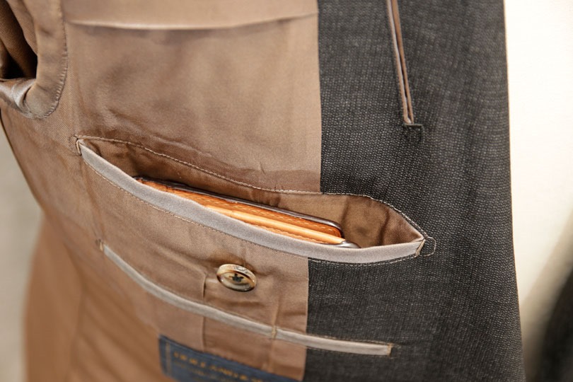 スーツのたばこポケットにスマホを入れたところ