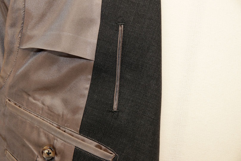 もともとは、乗馬用ジャケットの意匠ですが、手を突っ込みやすいのでオーバーコートでも用いられることも。ジャケットにおいては、すこしスポーティに見せる効果があります。