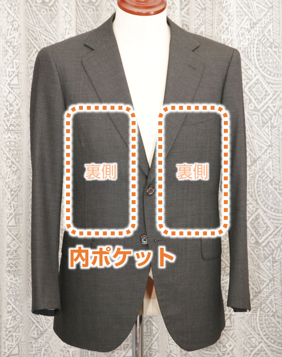 とはいえ、単に内ポケットといった場合は、両胸の裏側にあるポケットを言う場合が多いです。