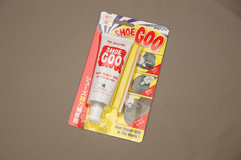 とりあえずアマゾンで物色して、評判がよさそうなのを一つ購入してみました。Shoe Goo(シューグー)です。