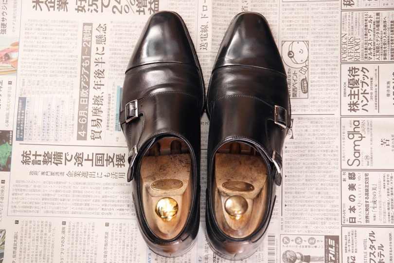 なぜかというと、この靴はダブルモンクストラップということがあって脱ぎ履きし易いからです。