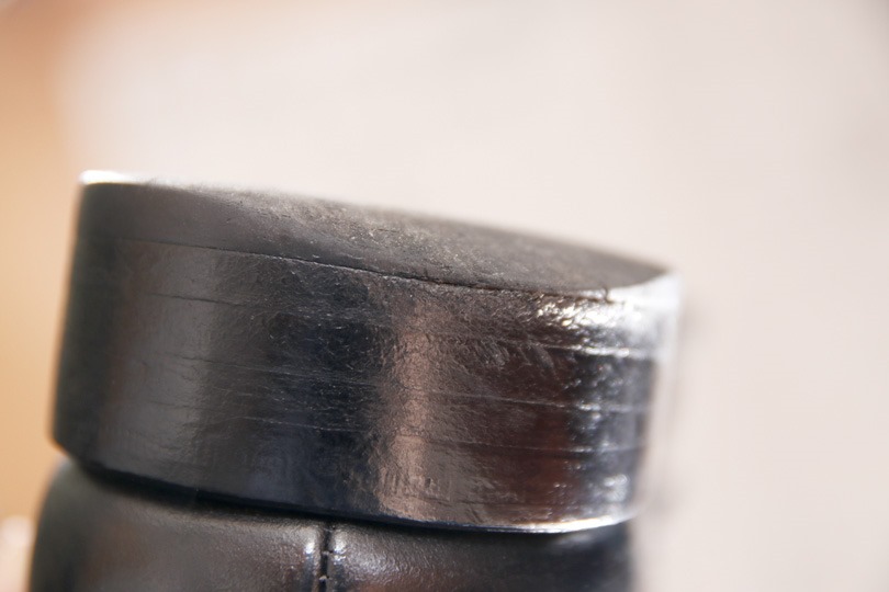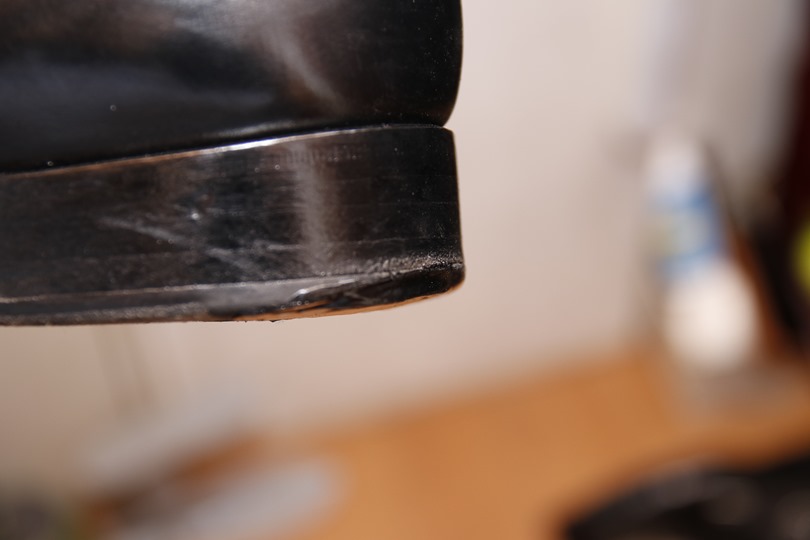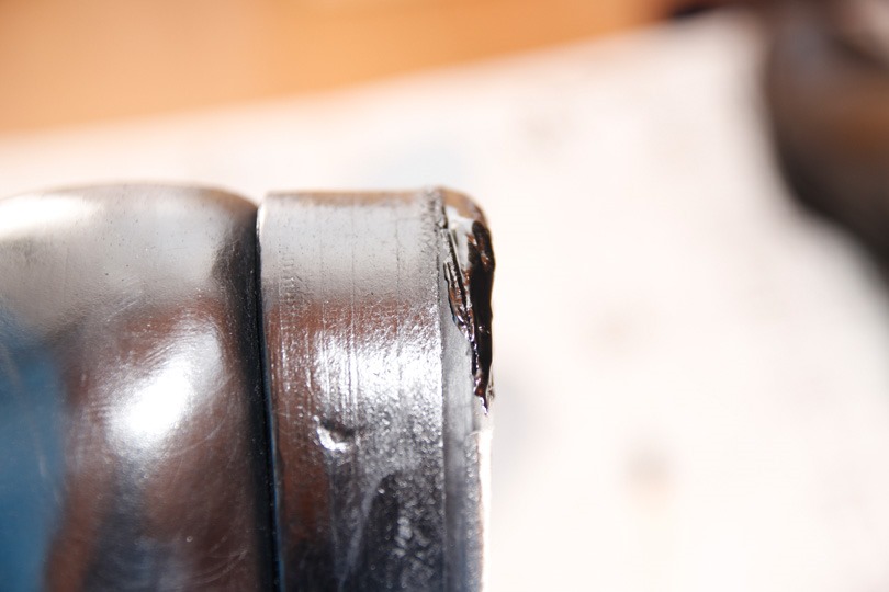 横から見たところ。マットな部分が元々のゴム部分、テラテラしているのが補修剤部分です。