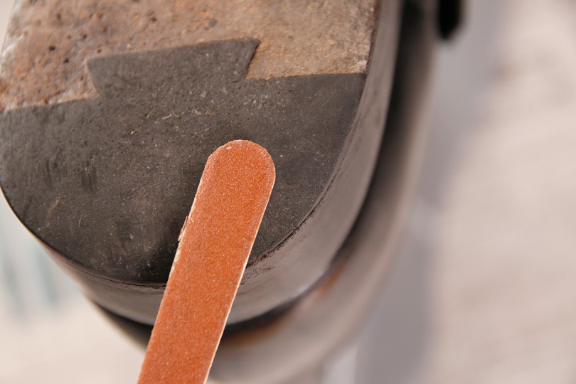 ちなみに、作業をする上ではこの様な靴修理用の台座があると楽です。