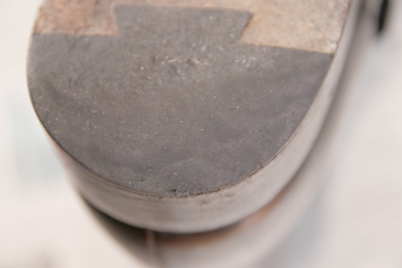 この靴は、かかとの最後部がゴムになっているタイプですが、その下の層(革部分)寸前まですり減っているのが分かります。