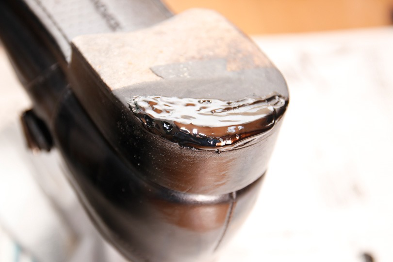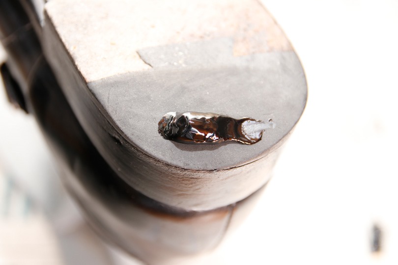 続いて、直接補修剤(シューグー)を塗ります。(実は、少し多く出し過ぎました。)