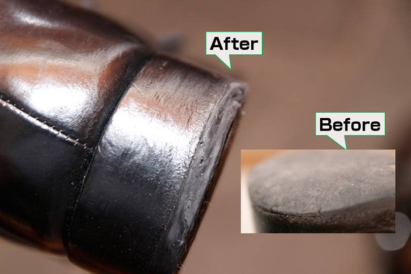 本日は、靴修理剤を使って、自分で革靴のかかとを修理した場合の、ビフォーアフターをご紹介します。
