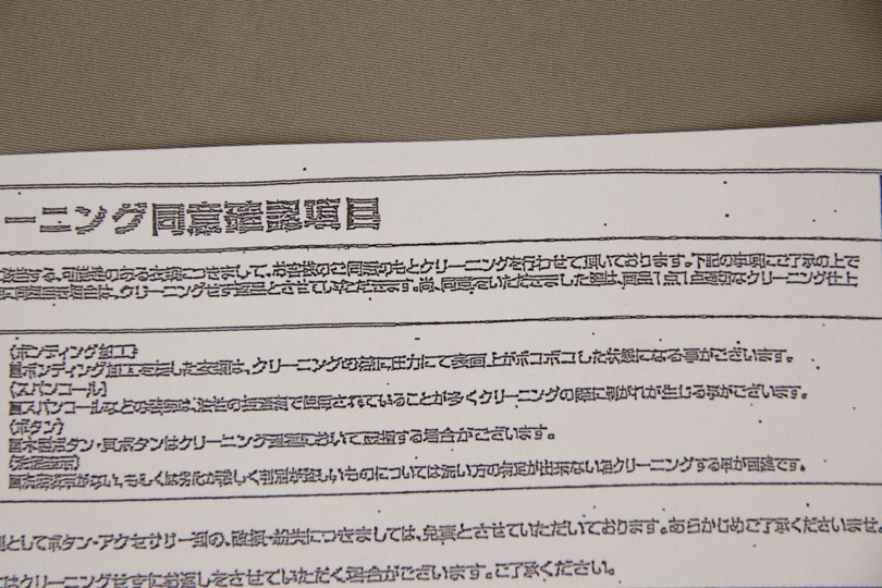 安いクリーニングにありがちな溶剤臭さや、貝ボタンの割れなどもなく、及第点だと思います。