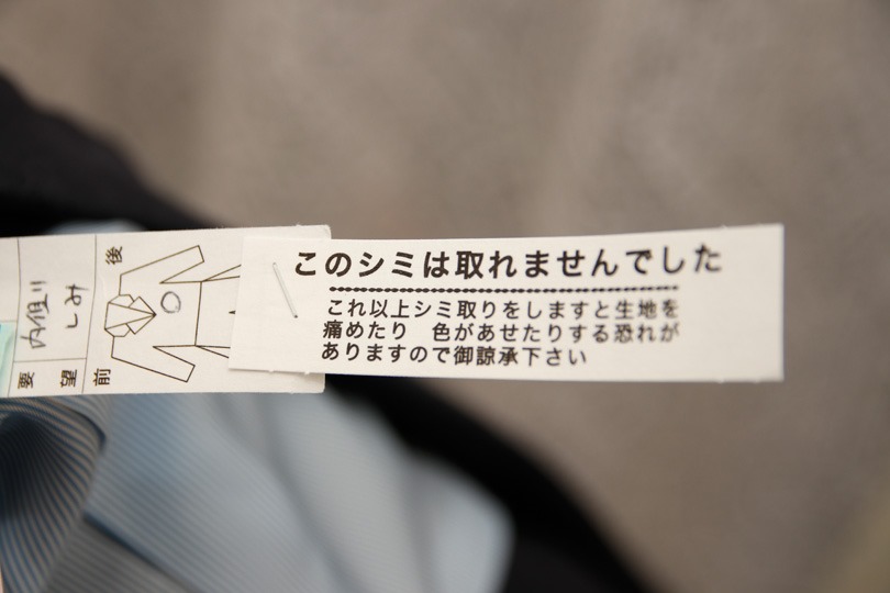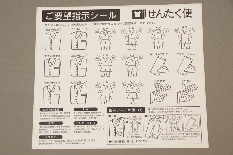 素晴らしいと思ったのが、シミ抜きなどの伝達事項がある場合は、このシールを使って指示出来ることです。