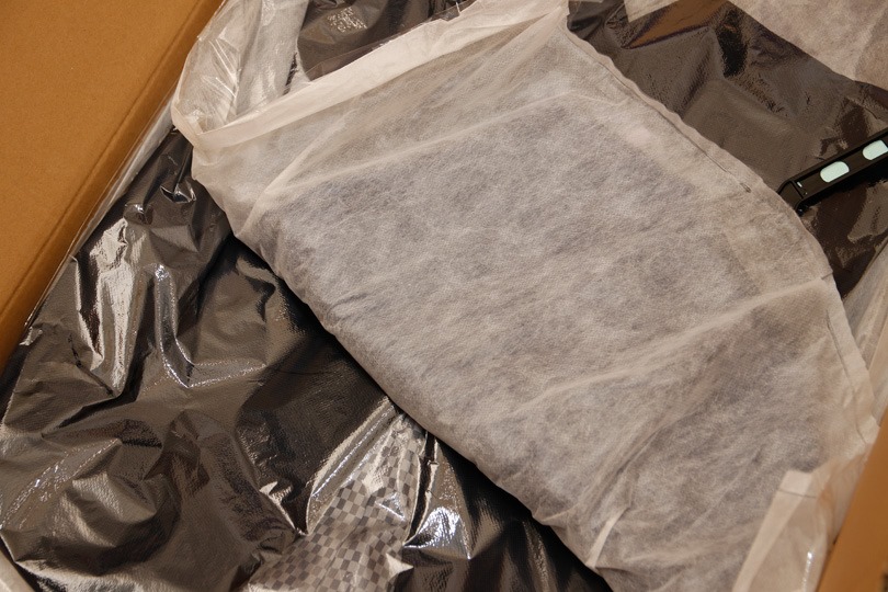プラチナ加工オプションをつけたこともあって、半分不織布の衣類カバーがついてきます。