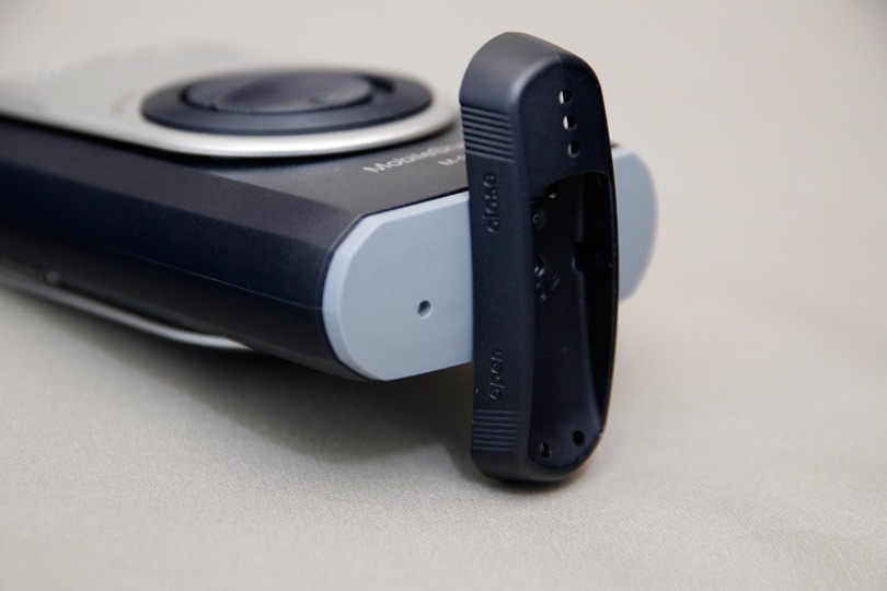 左からPQ220ケース、PQ220本体、M-90です。その差は歴然で、PQ220の方が嵩張りません。(ただし、乾電池を使う為、PQ220の方が若干重いです。)