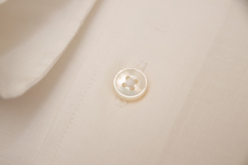 涼しげな白蝶貝のボタンを選びました。