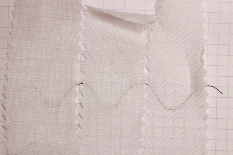 左から、リネン混、ラミー100%、高番手ラミー100%です。順に透けていっているのがわかります。