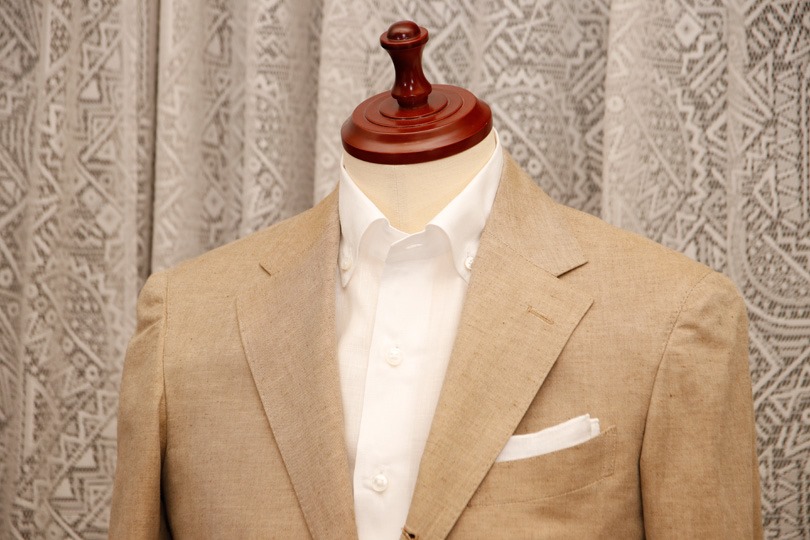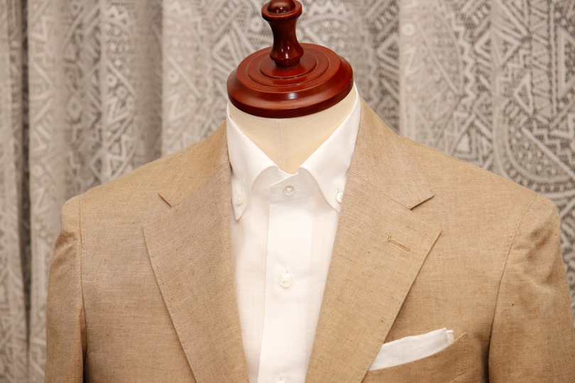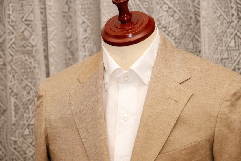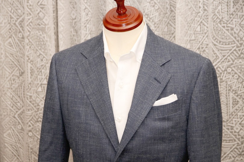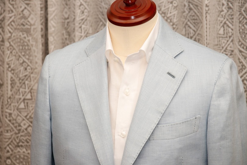 とはいえ、ただ光沢があれば良いというわけでもありません。今回選んだリネン混は、所々にリネンのネップが混ざり、カジュアル過ぎない範囲で「麻らしさ」も表現出来ていました。
