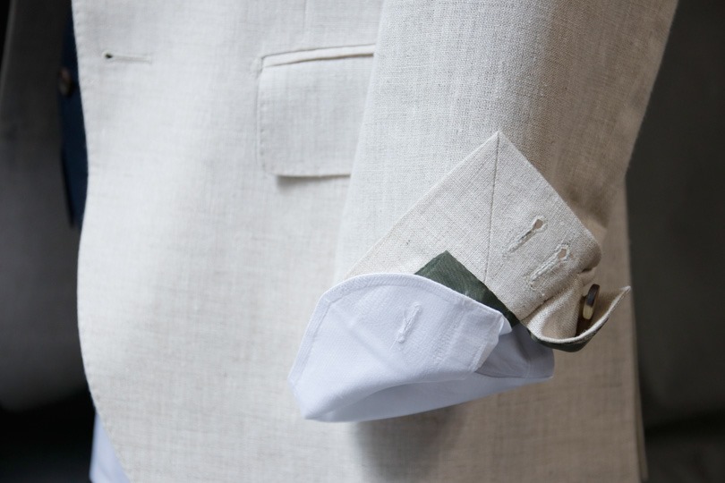 多くのジャケットはウールやポリエステルが使われていますが、夏用の素材としては綿や麻などの植物系素材も涼しげでお薦めです。