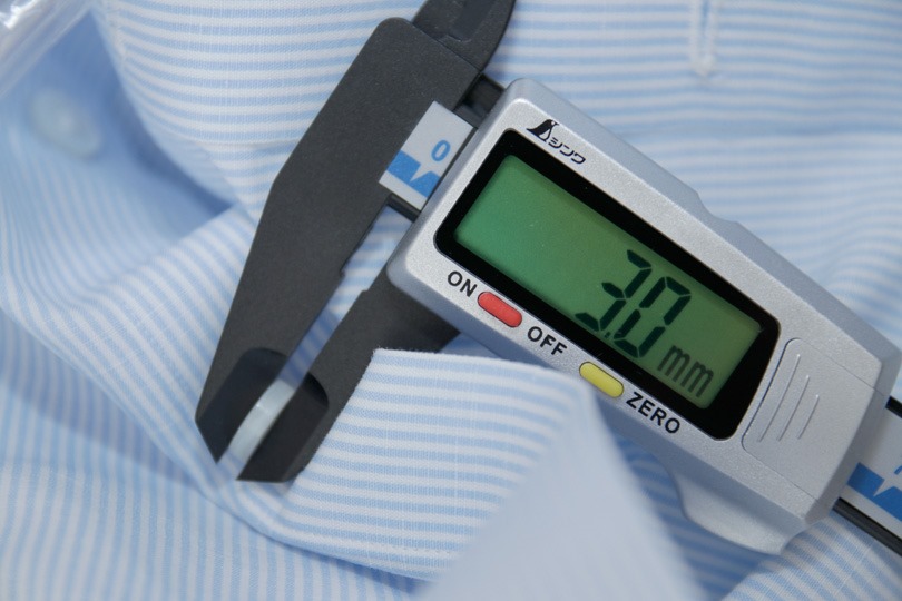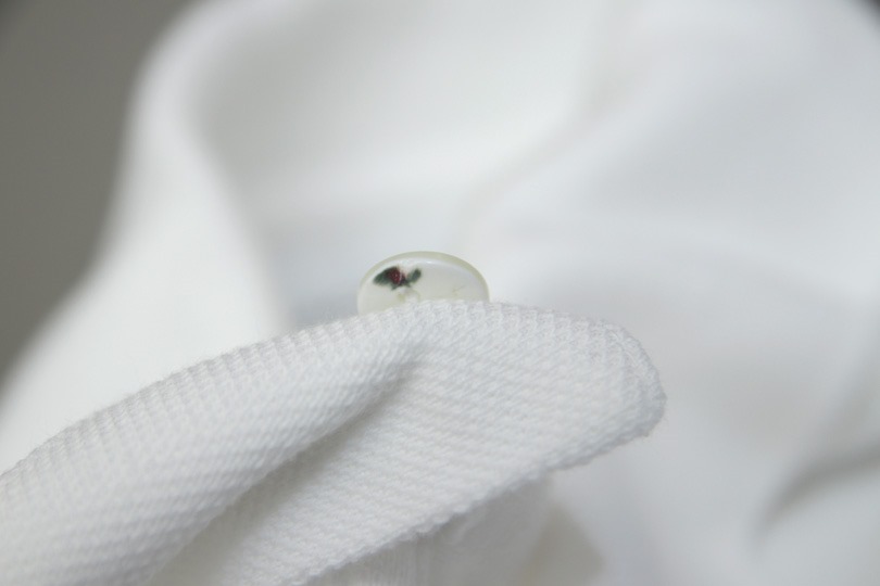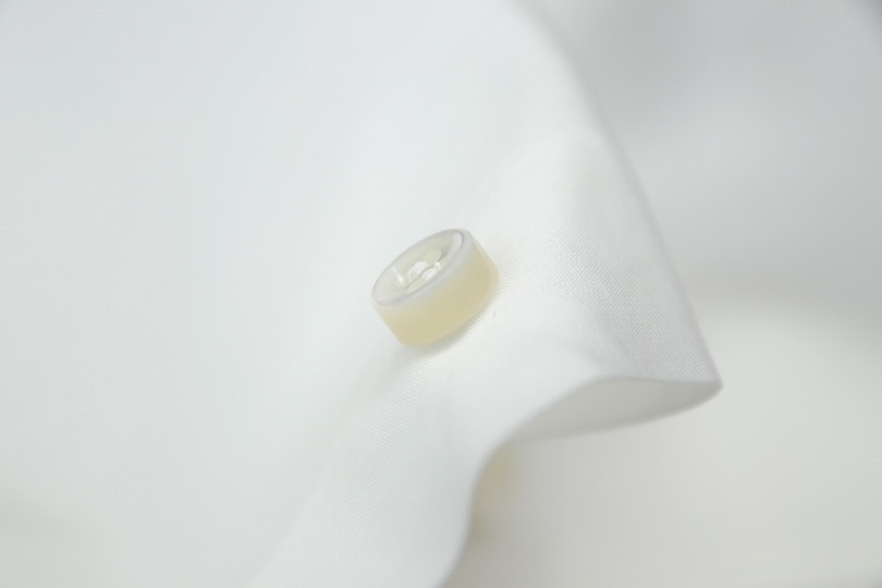 このように、厚手のボタンは見た目のインパクトが大きく、一目で高級シャツだと分かります。