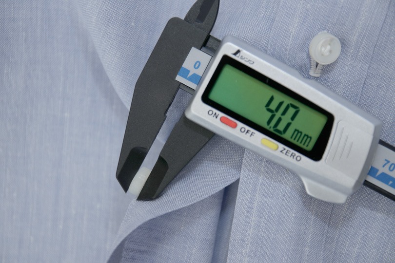 一般的なシャツ用の貝ボタンは2mm程度のものが多いです。