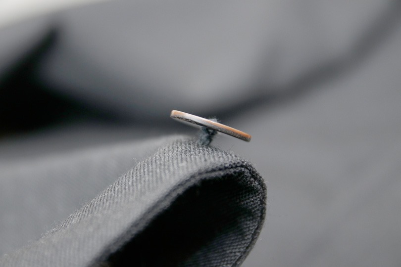 水牛ボタンをしのぐ存在感があるため、薄くても問題が無いと感じていましたが、やはりクリーニング時に破損し易いことや、扁平で留めにくいなどのデメリットもあります。