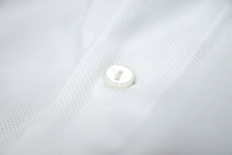 このとき、貝ボタン(特に白蝶貝)は強い輝きを放つため、たとえ高級な生地で無くともシャツをかなり豪華に見せます。