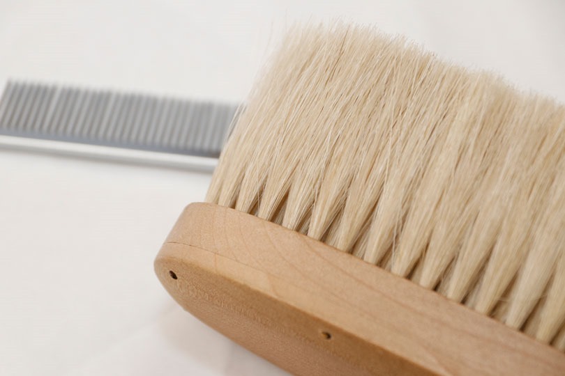 まずは、ブラシの外周部からクシを入れ、毛並みを整えながら優しくほぐしていきます。