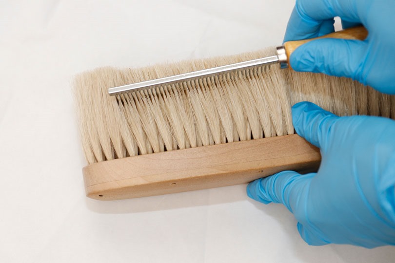 「ブラシの平野」のスタッフによると、手入れを簡単にかつ短時間で済ませるためにも、2週間に1回の高頻度で掃除した方がよいとのことでした。(長期間掃除しないと、ホコリや繊維屑が溜まることに加え、ブラシの毛をほぐすのに時間がかかるとのこと。)