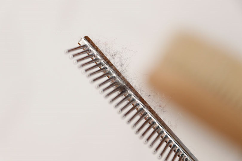 - 金クシを使い外側からブラシの毛をほぐす(少しずつ、優しくブラシをかける)