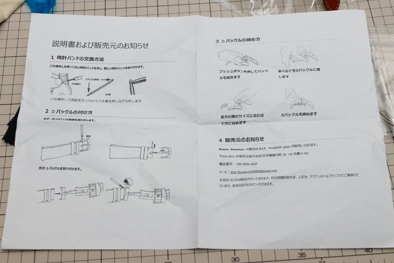 取付説明書が入っていないことが唯一の欠点ですが、取付方法はどのDバックルも同じですから、ネットを検索すれば簡単に見つけることが出来ます。