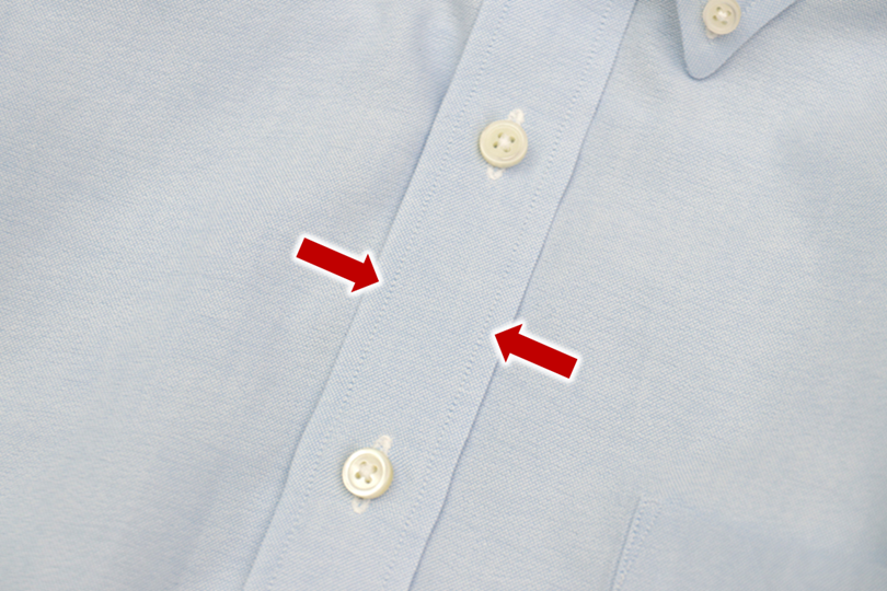 シャツのメーカーによって幅やステッチの位置が異なるため、シャツブランドに対するなんとなくの好き嫌いが、実は表前立ての幅に由来していた、という経験もあります(私だけ?)。