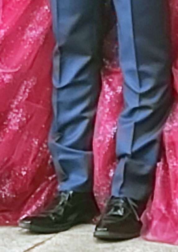 貸衣装のタキシード(正確には(以下略))は、ブレイシーズ(ズボン吊り、サスペンダー)によってズボンのウエスト位置を調整できる仕様になっていましたが、きちんとサイズ調整されておらず足下がだぶついていました。