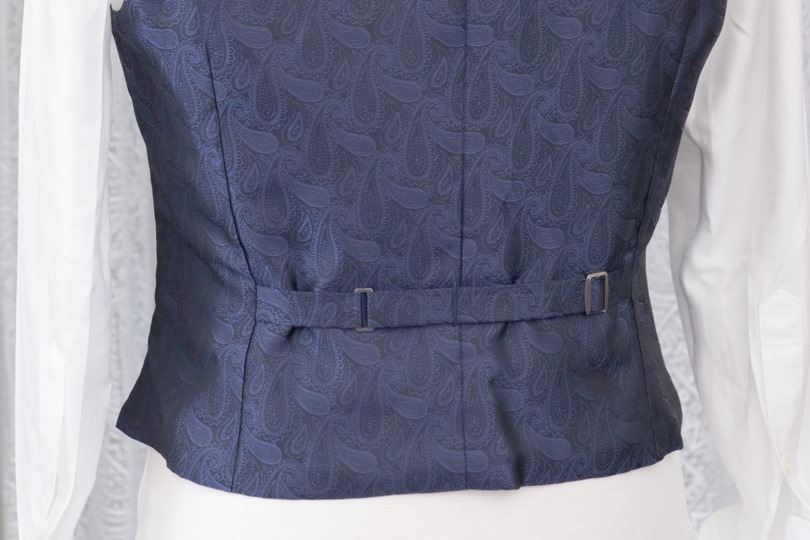 本来であれば、ベストの背にあるベルトを調整することである程度この浮きをとることが出来ますが、スタイリストもスタッフも全く対応せず……。うるさい親戚として私が締めに行きました^^;