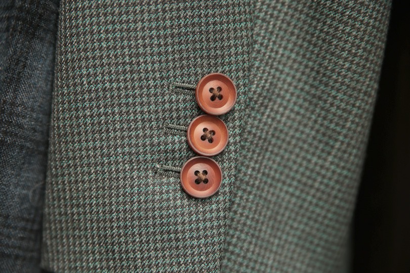 また、安価な生地を高価そうに見せるには本水牛・ナットボタンが効果的だと思っています。ボタンの質感がジャケットやスーツ、コートに与える影響は大きいですね。